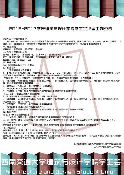 点击量:2580 日期:2016/05/26 作者:建筑与设计学院分团委 编辑: