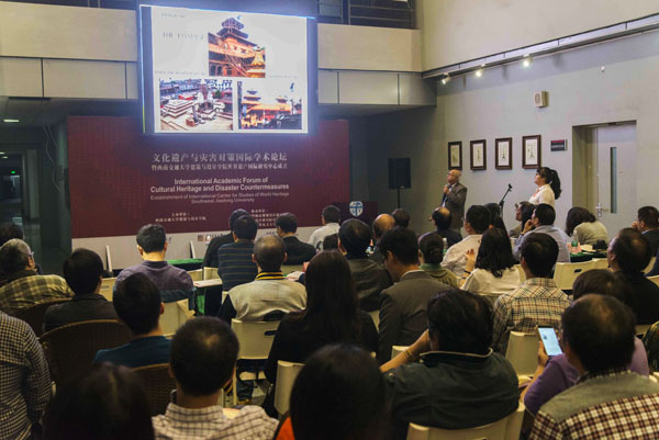 本次论坛包含了《日本灾害历史与未来》、《黑色遗产与工业灾难——“8.12”天津爆炸与英国雷德卡之比较》、《Assessment of Damage of Gorkha Earthquake 2015 on Kathmandu Valley》等7场专家学者主题演讲及学术对话。讲座中,日本名古屋大学教授、中国国家外专局千人外国专家计划特聘专家谷口元先生介绍了日本在自然灾害频繁的背景下文化遗产防灾研究方面的经验。随后的学术研讨,与会国内外专家结合最新国际学术动态就灾害、冲突、社会变革期间的文化遗产保护、文化遗产国际合作应采取的各种对策展开了热烈的研讨。此次论坛对我国文化遗产与灾害对策研究与实践的东西部合作和国际合作,起到了积极的推动作用。