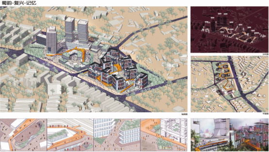 北京交通大学参加答辩的邵锦璠、沈琛豪、张哲、张涵支四位同学带来的作品是《成都地铁师大站综合开发设计》,该设计以习惯于传统生活方式,并希望将城市固有文化及氛围延续的“老成都“人群。探讨了大的城市关系下所营造的社区的文化特点、比例、尺度、功能及模块序列的运作方式。