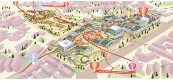 长安大学参加答辩的史振东、罗琦文波、楼睿、田园四位同学带来的作品是《慢城游园·第三空间下的TOD城市设计》,通过对项目的交通、景观、业态、文化四个方面现存的问题进行分析,引出第三空间的设计理念:第三空间介于第一空间和第二空间,是一个过渡转换的空间。可以达到为人群、社会、城市提供了喘息的机会,环节人群压力、完善社会结构、舒缓城市空间的目的。