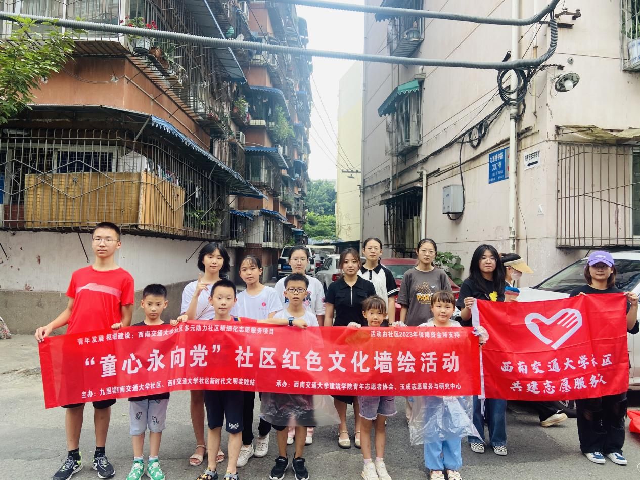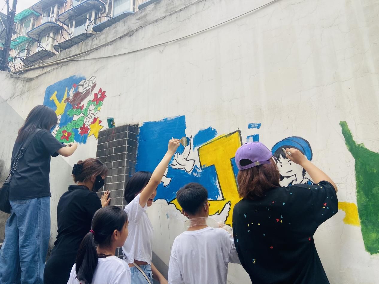 社区大学生社会实践基地的支持下开展了“童心永向党”社区红色文化墙绘活动。